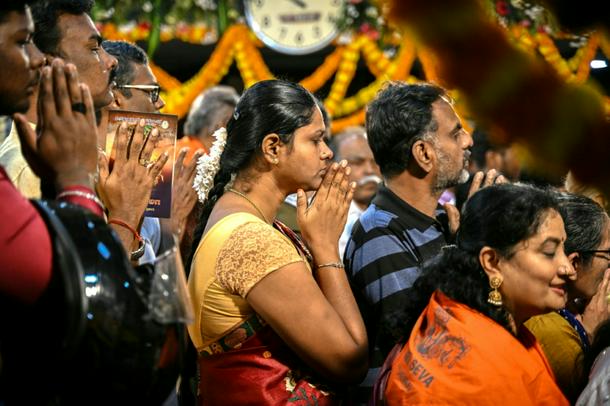 Hindu devotees offer prayers on New Year's Day at a temple in Chennai on January 1, 2026