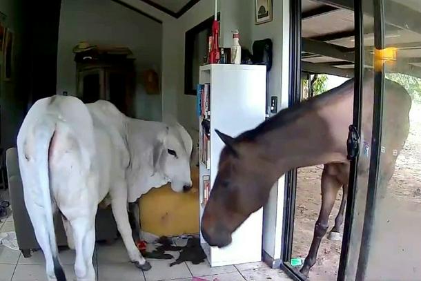 Sydney (AFP) - A lawmaker in Australia was left in udder disbelief when he came home to discover his pet dog had let a bull and a horse into his living room.