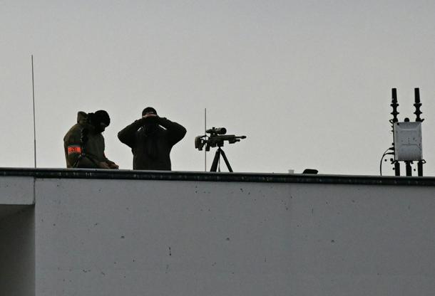 Police on the roof of the chancellery ahead of the visit by Ukrainian President Volodymyr Zelensky