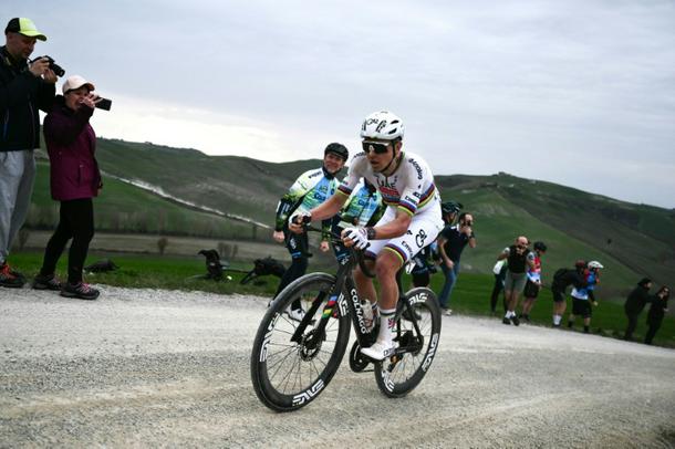 Pogacar made a typically devastating long-range break around 80-kilometres from the finish, after which it was a procession to the line in Siena for his third win in a row there.