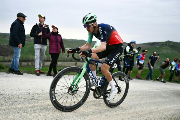 The Frenchman ended up in a chase group that included Del Toro – who was sitting on with his UAE teammate in the lead – former Strade Bianche winner Tom Pidcock and two-time Paris-Nice champion Matteo Jorgenson, but they were already over a minute behind 20km after Pogacar’s attack.