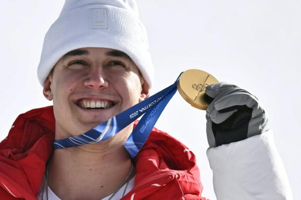 Switzerland's Franjo von Allmen after winning Olympic downhill gold