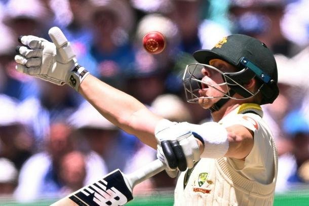 Australia captain Steve Smith reacts as he plays a shot on the second day of the fourth Ashes Test on a tricky pitch at the MCG