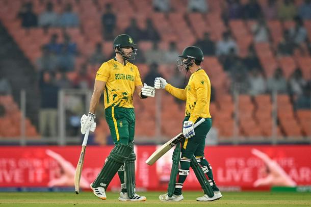 David Miller hit an unbeaten 39 off 23 balls and Tristan Stubbs was not out 34 off 19 as they finished the innings in the Group D encounter with an unbroken stand of 75 in 6.1 overs.