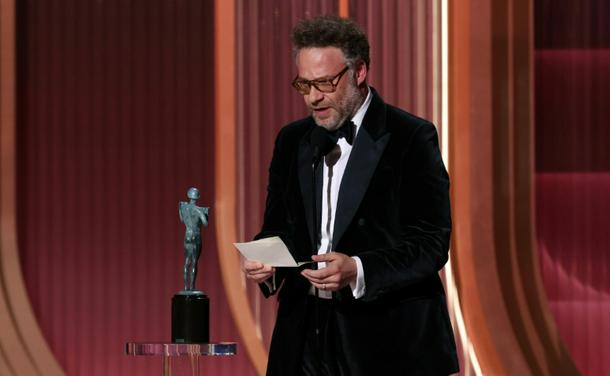 'The Studio' star and co-creator Seth Rogen accepted a posthumous Actor Award for his co-star Catherine O'Hara