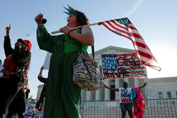 Demonstrators outside the US Supreme Court ahead of oral arguments in the birthright case