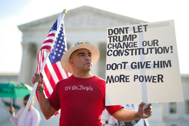 Michael Martinez demonstrates outside the US Supreme Court ahead of the birthright case