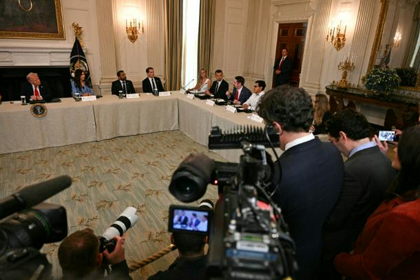 US President Donald Trump chairs a roundtable about Antifa in the White House State Dining Room