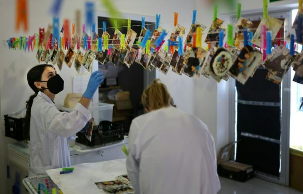 Decked in white lab coats and masks to protect themselves from mould and other contaminants, a group of students at a laboratory at Valencia’s Polytechnic University carefully clean and restore photos.