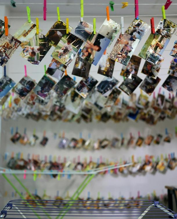 At a nearby table, other students carefully dismantle warped albums or disinfect and clean faded photographs, which were then hung to dry.