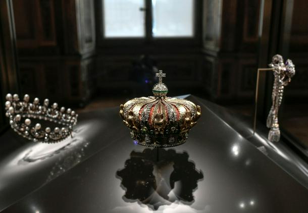 The crown features golden eagles and is covered in 1,354 diamonds and 56 emeralds, according to the museum’s website.